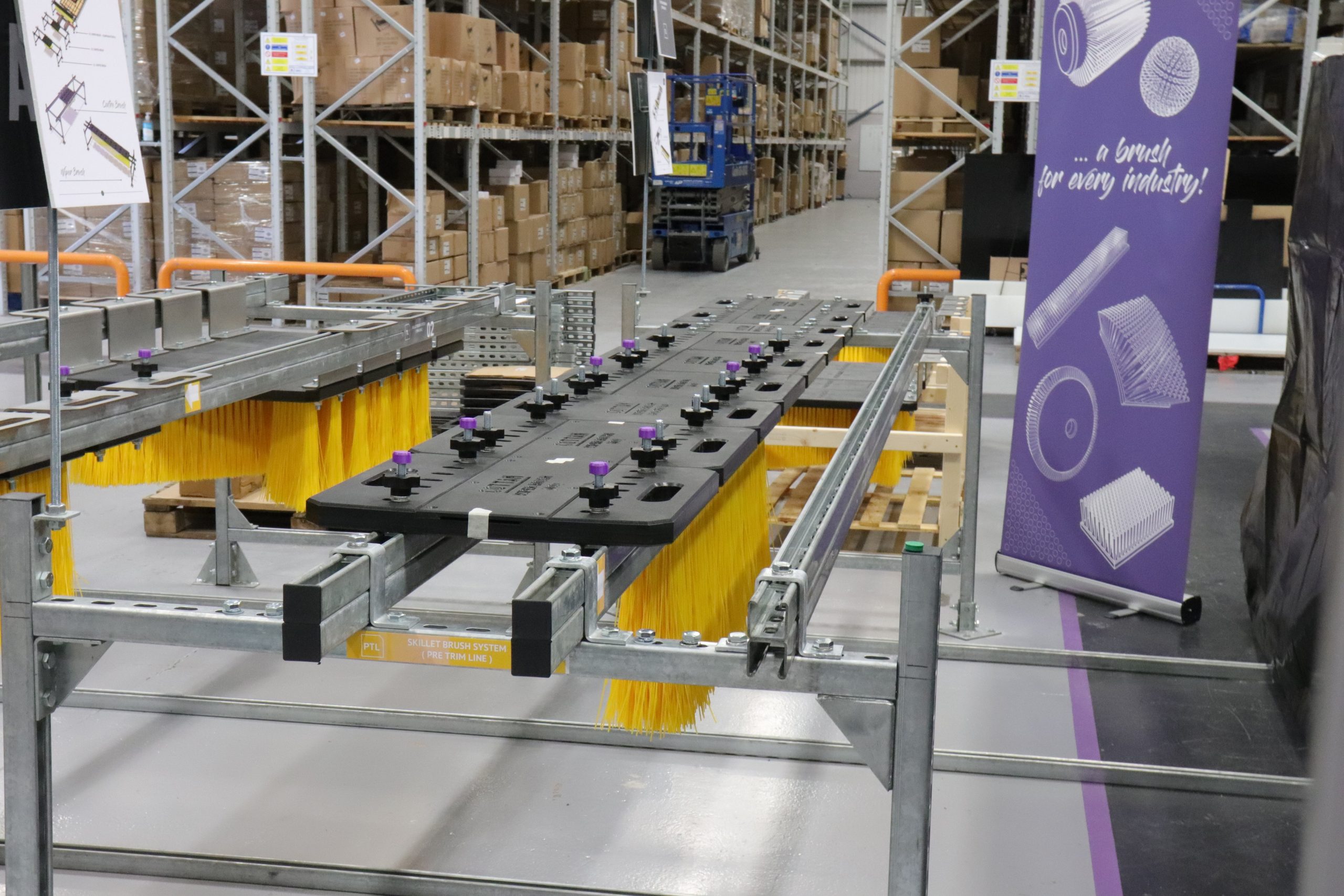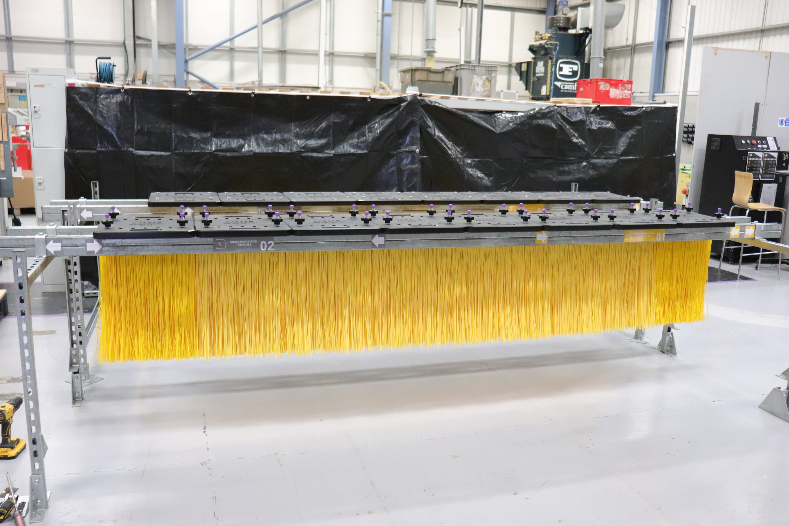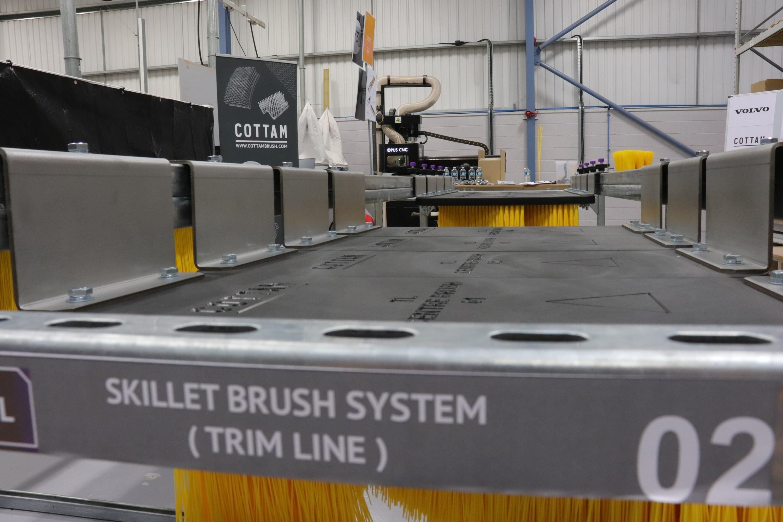 On 1st September 2025, the manufacturer’s engineers visited Cottam HQ to review the first brush assemblies. A full-scale mock-up skillet was built to demonstrate how the system would operate in the production environment, highlighting integration, ease of maintenance, brush removal, and durability.