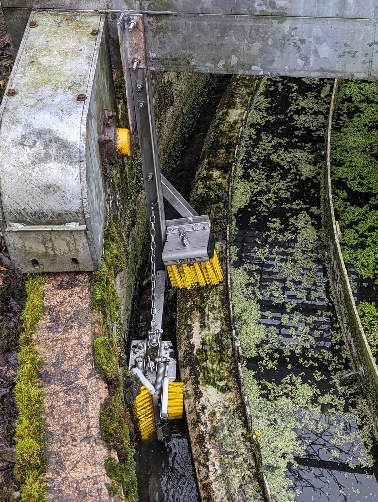 In 2023 FIN approached Cottam to supply a unique weir brush system for a project they were working on after coming across us online whilst searching for weir brushes. The current system needed replacing as the effluent launder channel required maintenance, so this was a complete removal and new replacement system install for FIN. What made this system unique to anything we had manufactured before was its size, our ‘standard’ spring loaded brushes would have been too wide to fit within this particular weir.